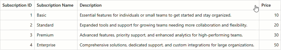 <DxGridDataColumn FieldName="Name" Caption="Subscription Name" />