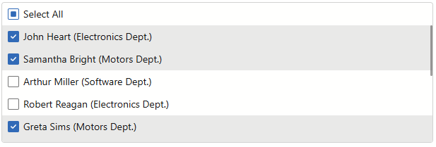 Click the Select All checkbox (when both ShowSelectAllCheckbox and ShowCheckboxes are true).