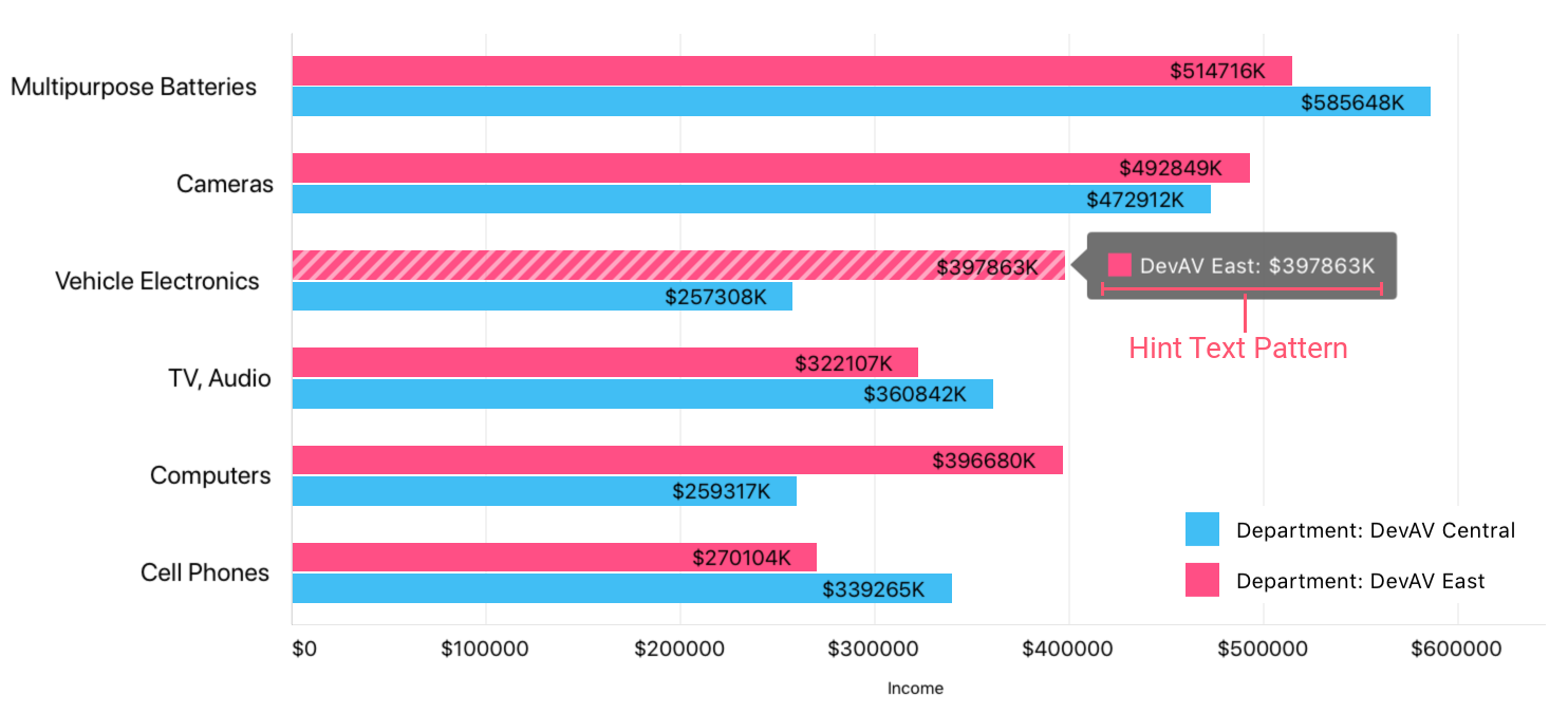 The point text pattern and series text pattern can utilize the following value placeholders to generate hint items’ text: