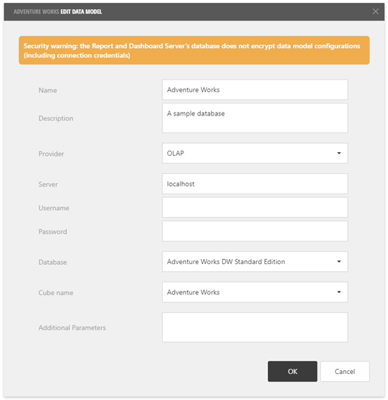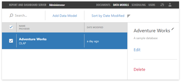 1. Click Data Models on the Report and Dashboard Server’s toolbar to switch to the data models view.