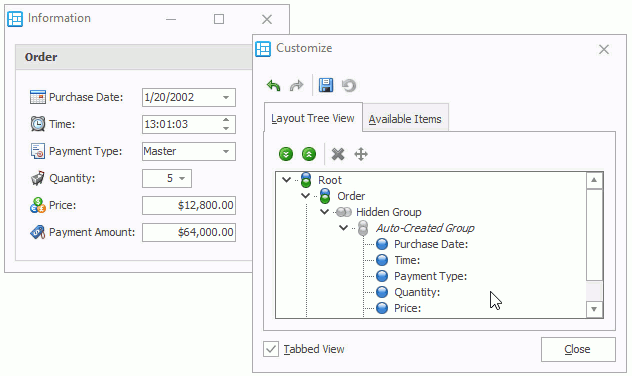 The control also supports design- and runtime layout customization. End users can resize, reorder, and rename elements to adjust the layout to their requirements.