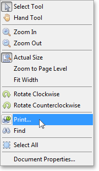 Clicking the “Print…” item in the PDF Viewer’s context menu: