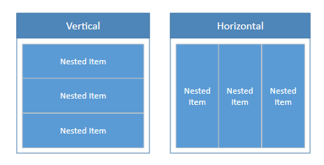 The DiagramList class is a DiagramContainer descendant. This is a special container type that stacks child items horizontally or vertically. The Orientation property specifies the direction.