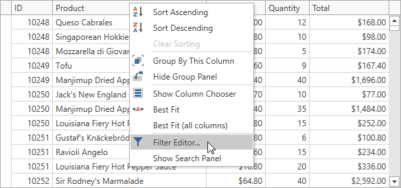 - The FilterEditorControl retrieves values, filter criteria, format settings and other details from the GridControl‘s context.