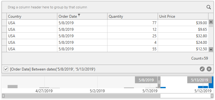 <dxfui:DateRangeFilterElement Context="{Binding FilteringContext, ElementName=grid}" FieldName="SalesDate" />
