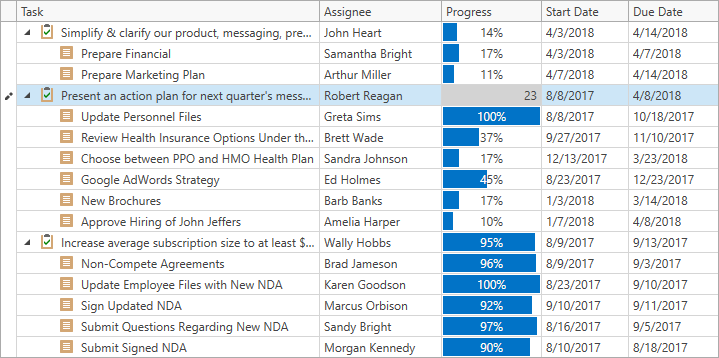 The code sample below sets cells in the Progress column as read-only if a task has subtasks: