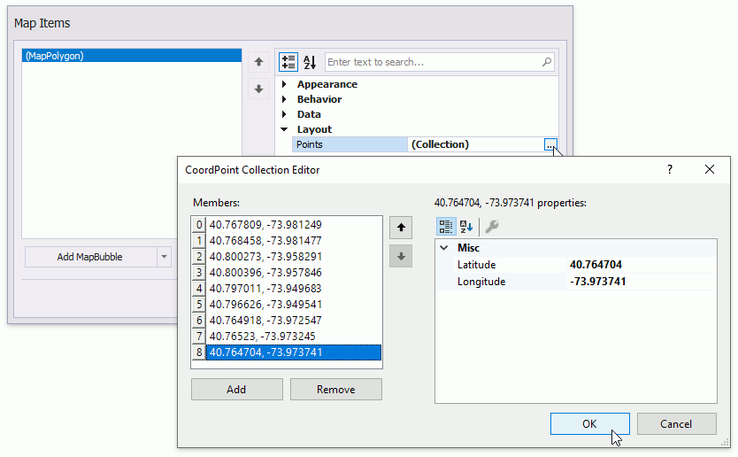 | MapPolygon.Points | Gets or sets the map polygon point collection. |