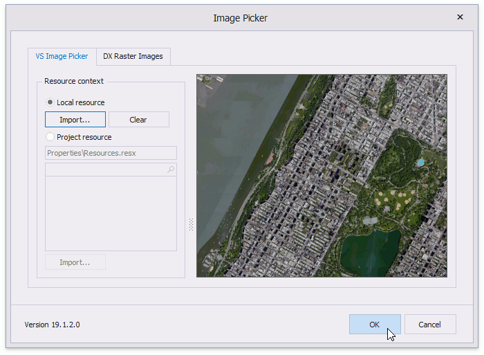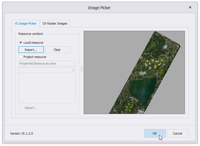 Use the Image Picker to import an image from local or project resources. Click OK.