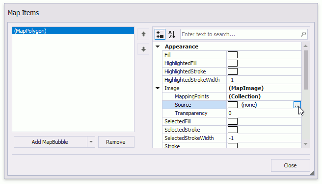 Click the polygon’s MapImage.Source property ellipsis button to invoke the Image Picker dialog.