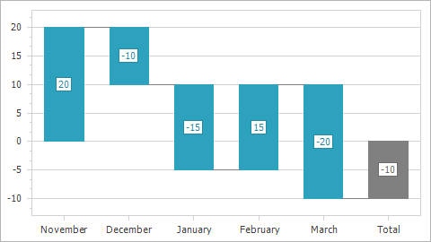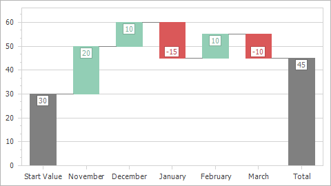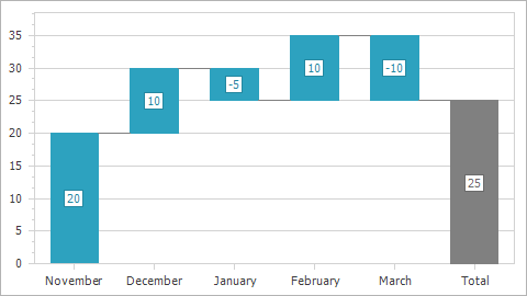 If the WaterfallSeriesView.ValueOptions property is set to a WaterfallRelativeValueOptions object, the control processes data source values as increments/decrements. You can create and assign a WaterfallAbsoluteValueOptions object to treat data as absolute values.