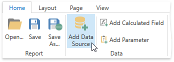 You can invoke the Report Wizard to add a new data-bound report to your application. The Report Wizard contains the Data Source Wizard pages.