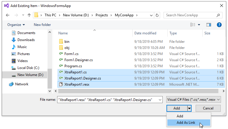 Due to limitations in .NET Core 3.0, we are currently unable to integrate the Report Designer into Visual Studio’s design time for WinForms or WPF projects. This topic explains how you can work around this limitation and create reports at design time. This method requires that you create an auxiliary .NET project that links reports available in your .NET Core 3.0 project.