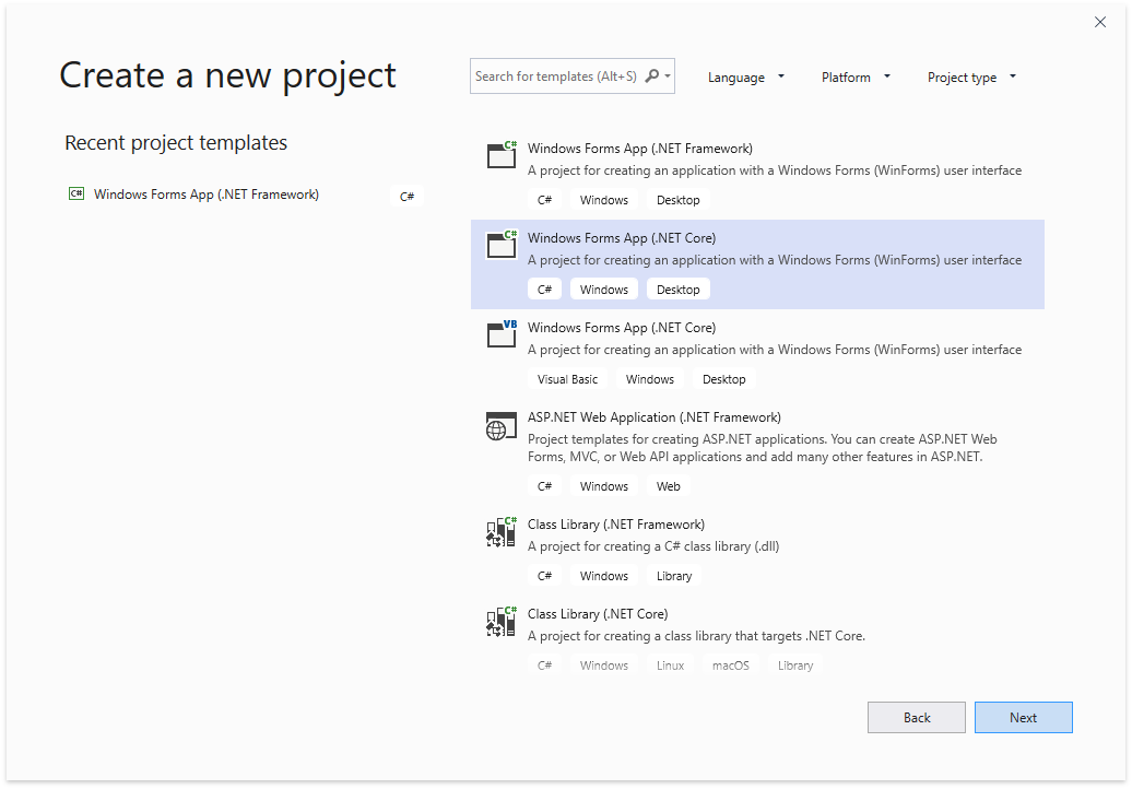 Information on DevExpress WinForms apps: .NET Core Support