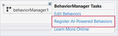 (For .NET Framework Projects) Use the Register AI-Powered Behaviors option in the BehaviorManager’s smart tag menu to add the “AI-Powered Behaviors” submenu with report behaviors to