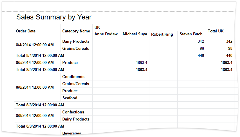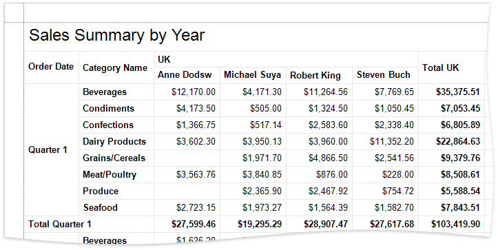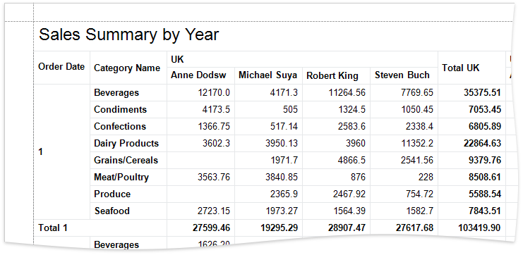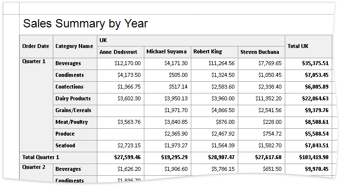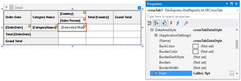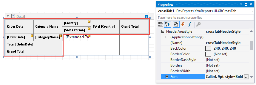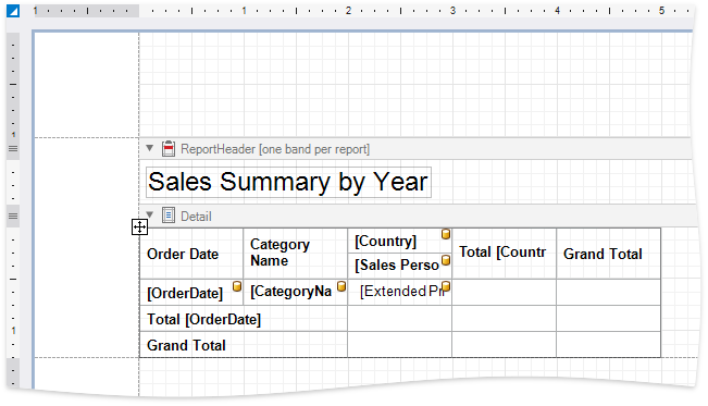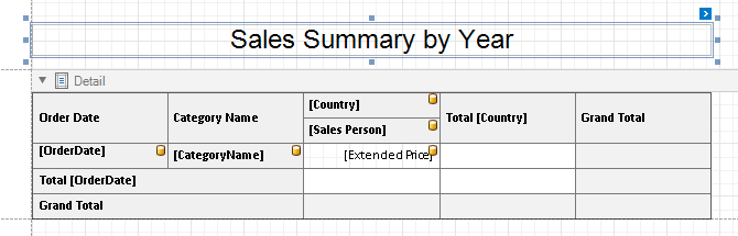 This tutorial describes how to use the XRCrossTab control to create a report similar to the Sales Summary Report demo in Visual Studio at design time.