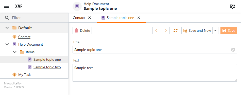HelpDocumentobject, create a detail view. - For every detail view, create a navigation action (ChoiceActionItem) that displays the detail view.