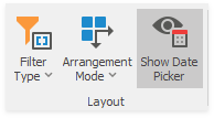 To show or hide the Date Picker component, click the Show Date Picker check button in the ribbon (Date Filter Tools contextual tab-> Design page -> Layout group):