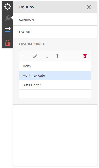 Click the edit icon to invoke the editor’s panel and configure a custom period. The following image illustrates how to modify the Month-to-Date custom period: