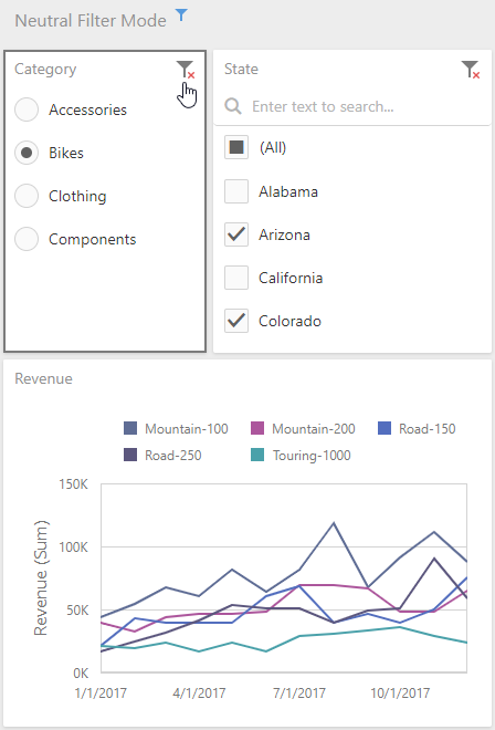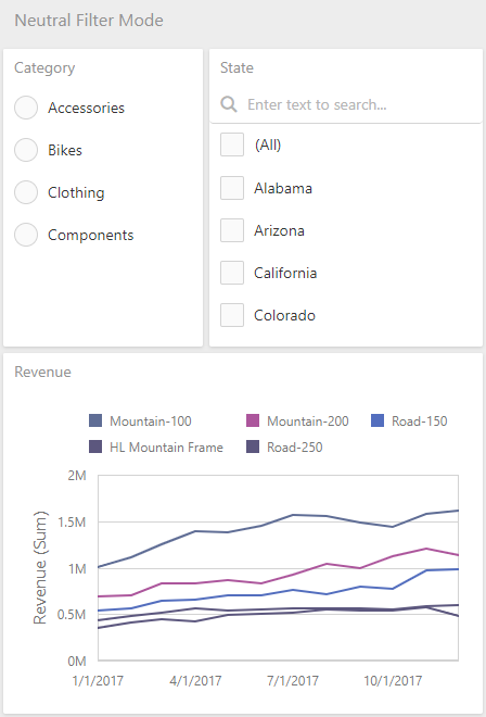 To solve these issues, the Neutral Filter Mode is implemented. It is neutral in the sense that it does not apply any criteria to the data source in its default state, resulting in improved performance.
