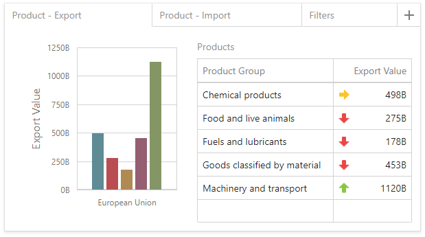 Like the Dashboard Item Group, the Tab Container dashboard item allows you to combine elements within a dashboard. The main Tab Container’s purpose is to split the dashboard layout into several pages.