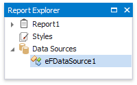 The newly created data source will be displayed in the Data Sources node of the Report Explorer. Additionally, the hierarchy of the data source will be reflected by the Field List.