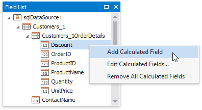 In the Field List, right-click any item inside the data relationship node, and in the invoked context menu, select Add Calculated Field.