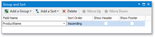 Select the Detail band in the detail report and switch to the Group and Sort Panel. Click Add a Sort, and in the invoked drop-down window, select the required data field.