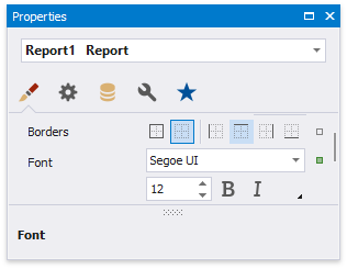 Click the gray area around the design surface to select the report, and in the Property Grid, specify the font settings. These settings are distributed to all report elements.