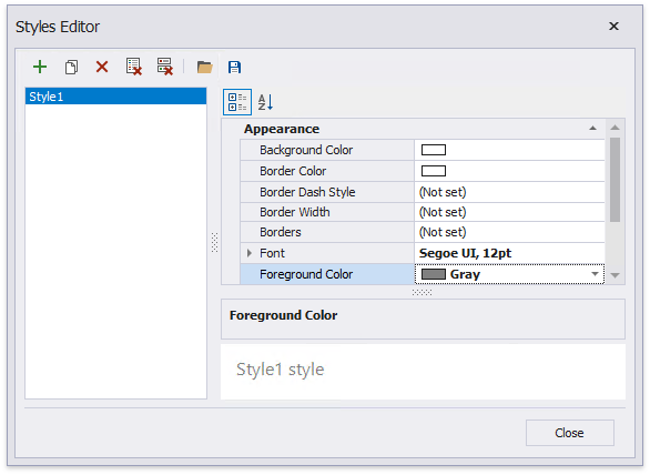 In the invoked Styles Editor, click the plus button and specify appearance properties for the newly created style.