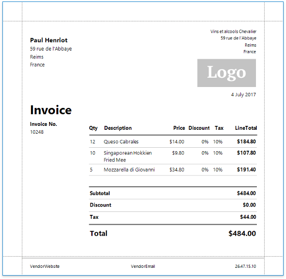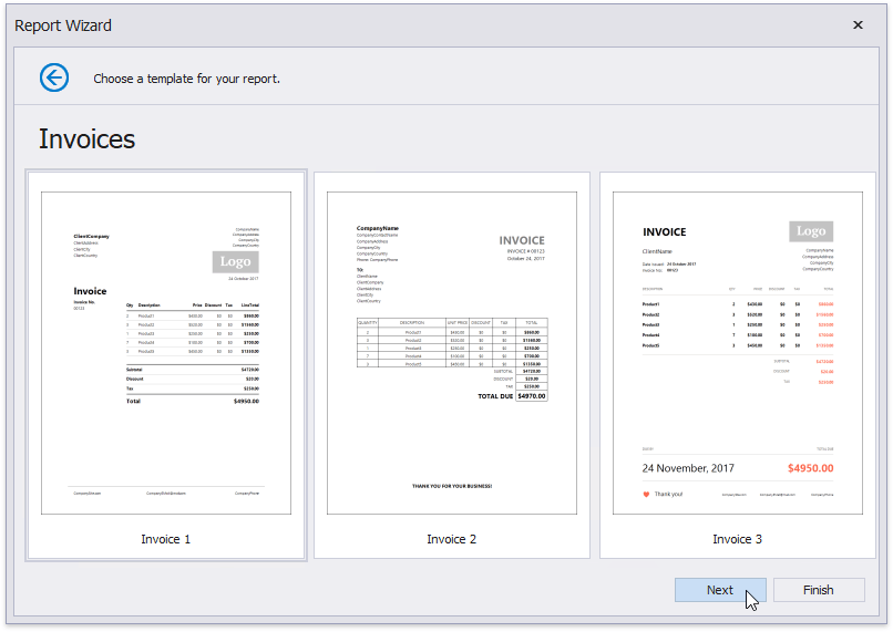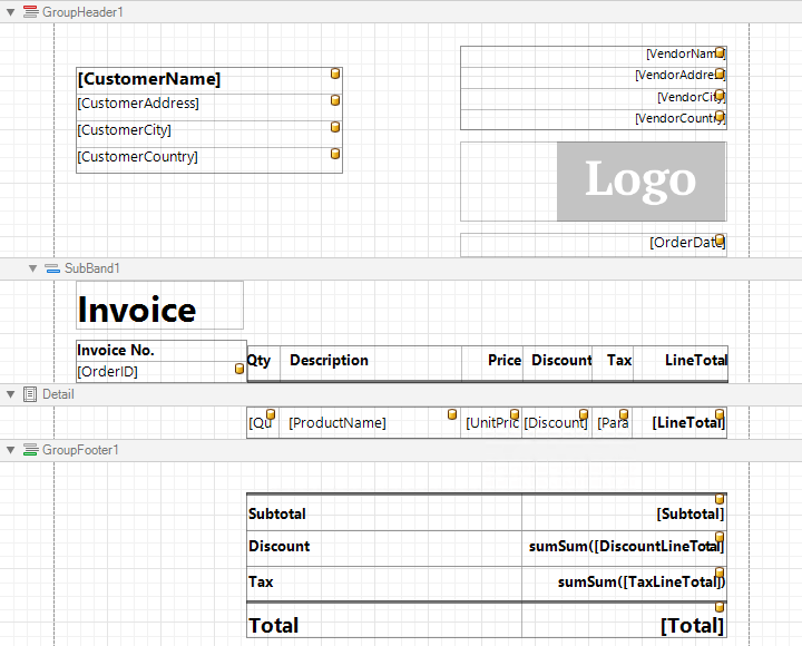 See the Invoices topic for information on how to create an invoice report with a custom layout from scratch.