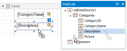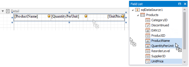 Drop the required data fields from the Field List onto the Detail band.