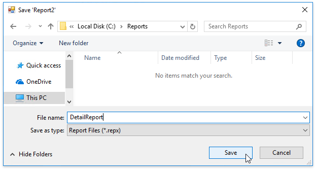 Save the detail report by selecting Save | Save As in the toolbar. In the invoked standard Save dialog, specify the folder and file name.