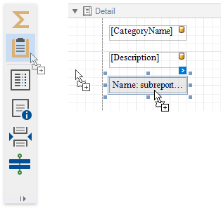 Switch back to the master report and drop the Subreport control from the Toolbox onto the Detail band.
