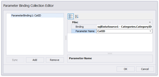 In the invoked Parameter Binding Collection Editor, click Add to add new binding. In the property list, specify the data field to which you want to bind a subreport parameter and the name of the parameter that you want to bind.