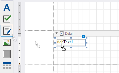 Drop the RichText control from the report controls Toolbox tab onto the Detail band.