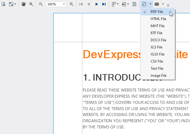 Double-click the control and insert the DevExpress Website Terms of Use text.