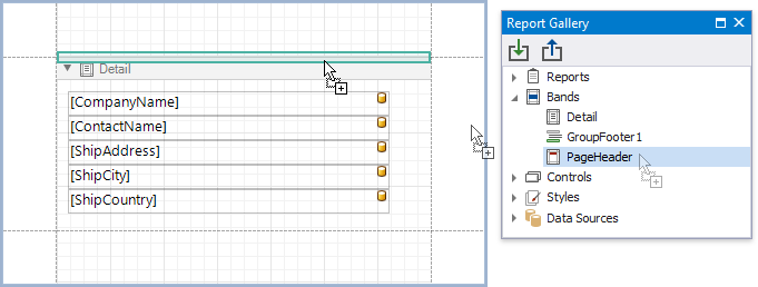 To apply a control template, drag and drop it from the Report Gallery onto a band.
