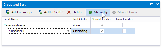 When a report has multiple groups, you can change their order by clicking Move Up or Move Down.