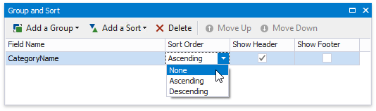 Select None if your groups are already ordered in the data source, and you do not need to sort them in the report.