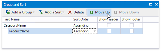When a report has multiple sort fields, you can change their order by clicking Move Up or Move Down.
