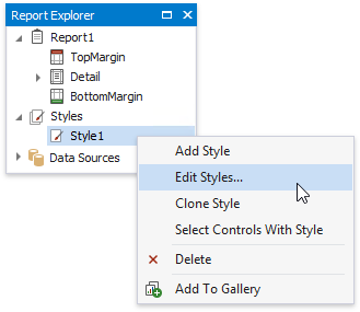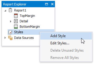 Switch to the Report Explorer and right-click the Styles category to create a new visual style.