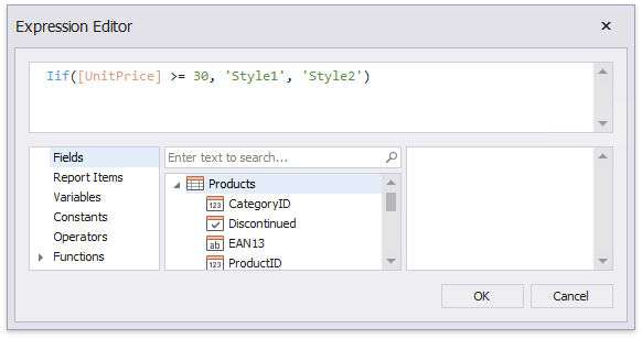 In the invoked Expression Editor, specify the required condition for switching between the created styles.