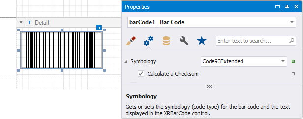 In the property grid, expand the Symbology list and specify the following property specific to Code 93 Extended: