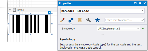 Drag the Barcode item from the report controls toolbox tab and drop it onto the report.