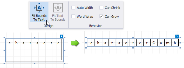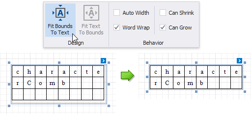 You can also adjust the character comb’s size to match its characters using the Fit Bounds To Text toolbar button or context menu command: