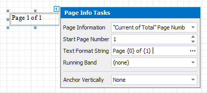 In addition, a format string can be applied to a control’s contents. For example, you can change the control’s format to Page {0} of {1} using the Text Format String property.
