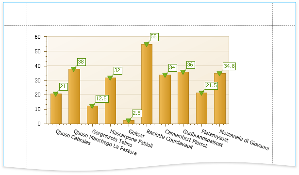 This document demonstrates how to add a chart to a report, provide data for chart series, and set up chart elements. This topic shows two chart series based on the same data source. You can use different data sources for different series.