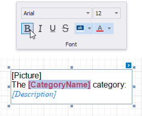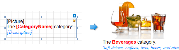 This topic describes how to provide data to report controls using the advanced Mail Merge binding method. This feature allows you to create templates in which data source values populate specific fields while other text remains constant (that is, allows you to combine static and dynamic content within the same control).