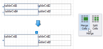 Merges the selected cells. This command is available if the selection has a rectangle form.