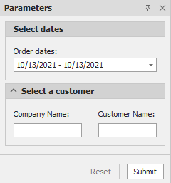You can unite report parameters into expandable groups, place parameters side-by-side, add separators, and more.
